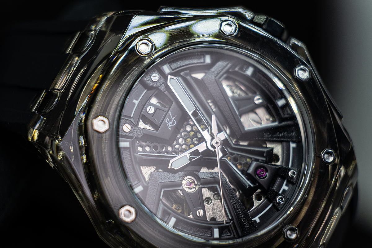 Die neue RauhWatch GHOST ist eine tolle Ergänzung der Kollektion, entworfen mit einem minimalistischen Look und gefertigt für alltägliche Funktionalität. Ein herausragendes Merkmal dieser Uhr ist sein Vollkunststoffgehäuse, das es unglaublich leicht und angenehm für längere Zeit zu tragen macht. Dieses Material ist nicht nur praktisch, sondern macht die Uhr auch zu einem echten Hingucker. Der sanfte Grauton des Gehäuses sorgt für einen raffinierten Touch, während das durchbrochene Design den Blick auf das Innenleben der Uhr freigibt.